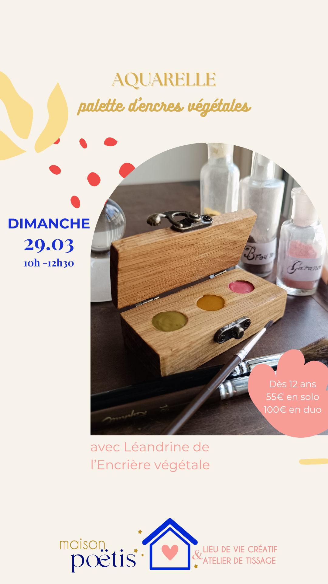 Atelier Aquarelle végétale | Palette d’encres le 29/03 avec L’Encrière végétale