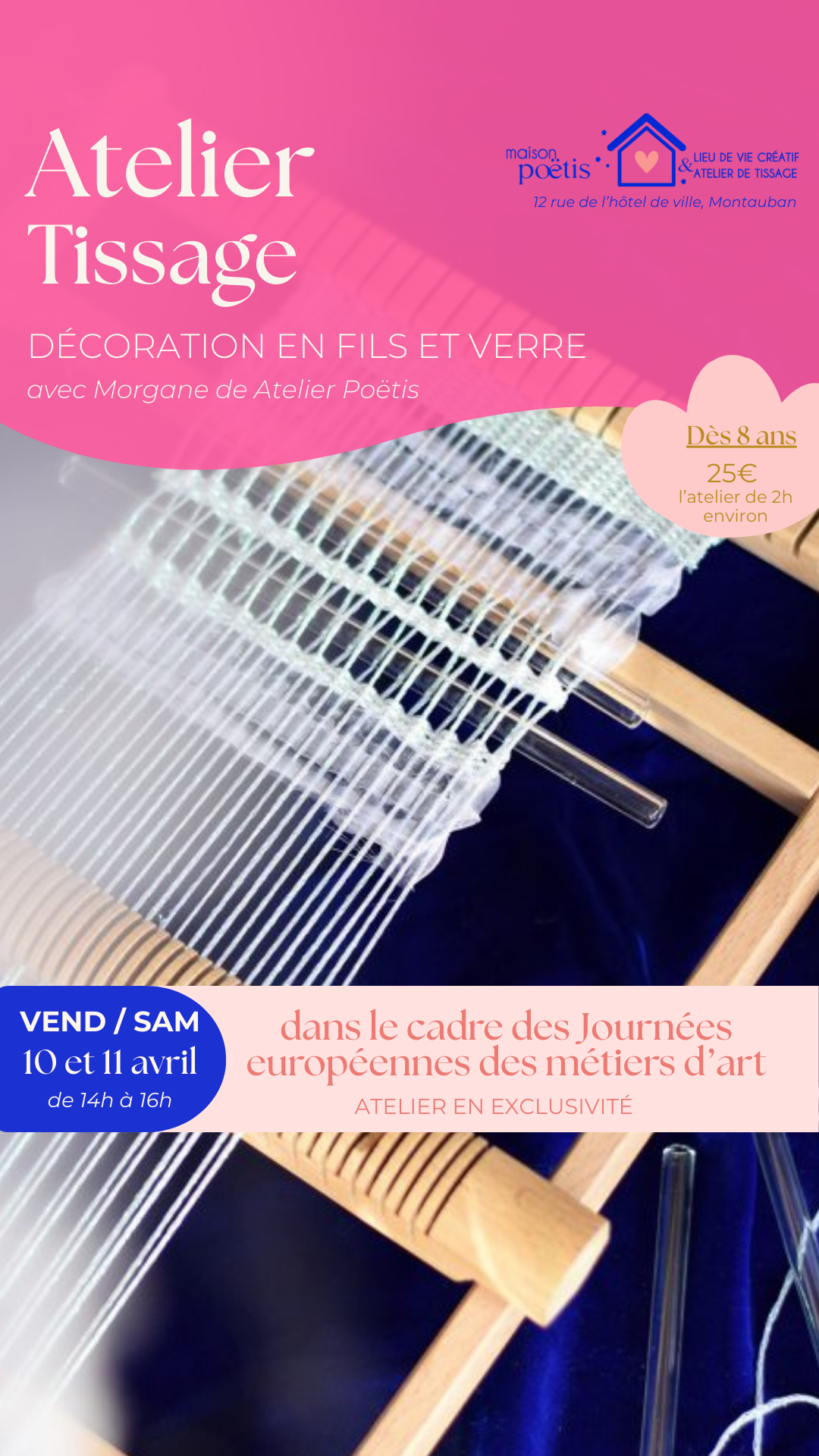 Atelier tissage JEMA – Décoration murale fils et verre le 10 et 11/04